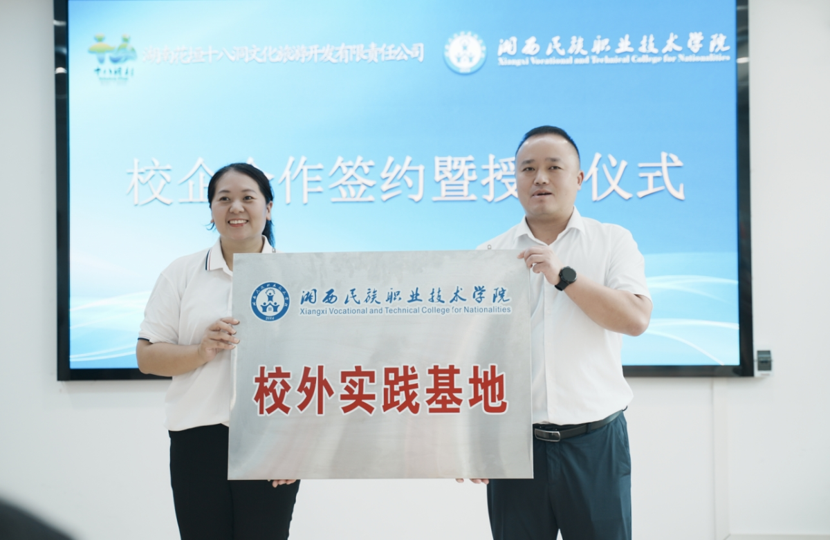 当天下午,学院与花垣十八洞文旅公司在十八洞村党校举行了庄重的校外实践基地授牌仪式。花垣县委常委、宣传部部长滕召帆到会致辞,旅游管理学院院长张琼同志代表学院授予花垣十八洞文旅公司总经理麻先明“校外实践基地”牌匾,湘西职院党委委员、副校长、吴娟发表重要讲话。校企双方在教学实践领域开启了合作新篇章,为旅游管理专业学生提供了更广阔的学习实践平台。